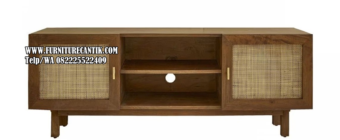 Meja TV Kayu Jati Modern Kombinasi Rotan