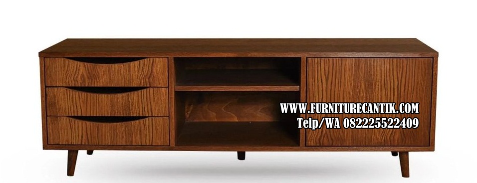 Meja TV Kayu Jati Modern Variasi Laci